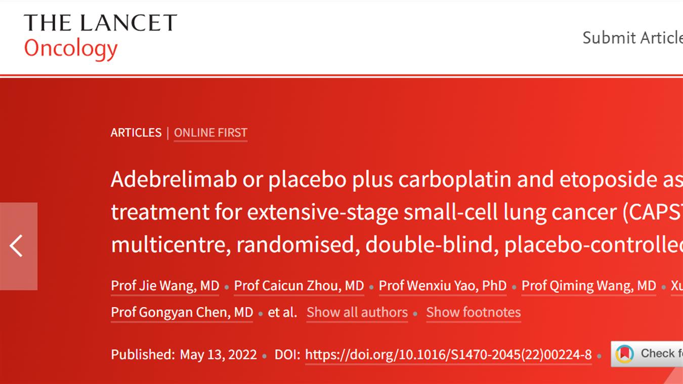 泛亚电竞卡瑞利珠单抗联合阿帕替尼最新研究成果荣登《柳叶刀·肿瘤》